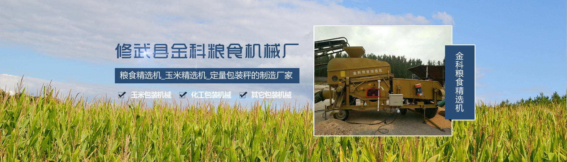 修武縣金科糧食機(jī)械廠,研制開發(fā)了多種系列糧食精選機(jī),電子秤,包裝秤,分裝機(jī),玉米脫粒機(jī),脫粒機(jī)輸送機(jī),皮帶機(jī),除塵器,脈沖除塵器,提升機(jī),絞龍,糧食上料機(jī)等糧食機(jī)械。,在使用中得到各地用戶的一致好評! 另外專注生產(chǎn)的計(jì)量包裝秤,產(chǎn)品主要應(yīng)用于玉米包裝機(jī)械,化工包裝機(jī)械,以及其它包裝機(jī)械。產(chǎn)品銷往玉米加工廠家,面粉加工廠家,化肥廠家等。
